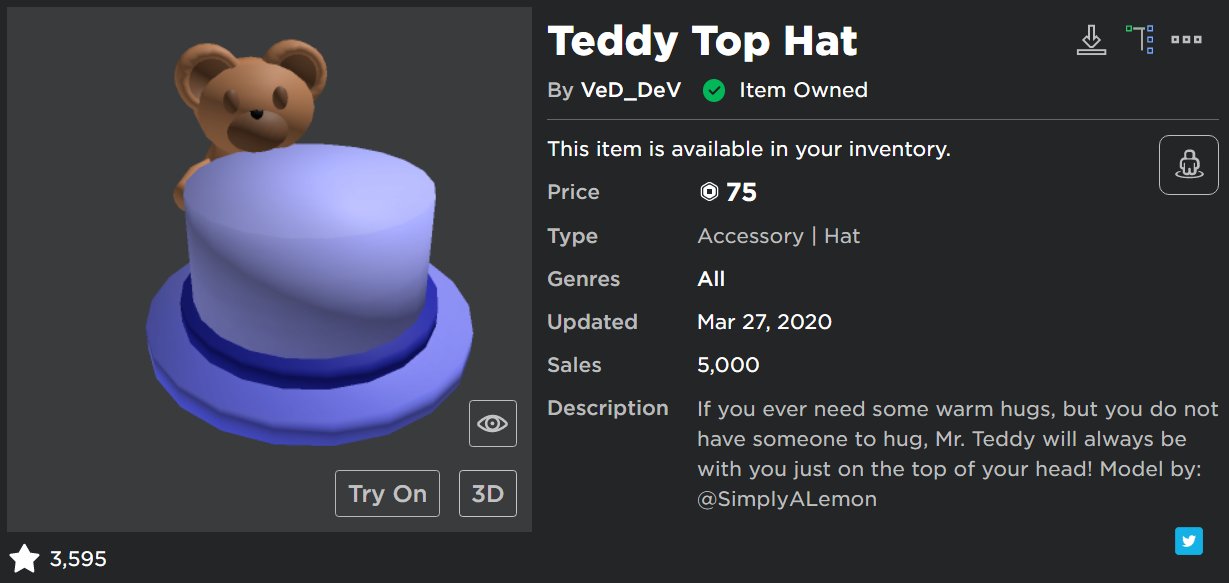 Eivise Profile Rolimon S Teddy Top Hat Roblox 2020 2019 game roblox cartoon kids sun baseball caps hat hip hop hats boy girl action toy for children birthday gift fans souvenir from ee456 57 91 Roblox